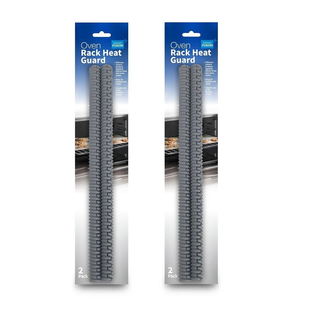 Flexible silicone covers dissipate heat and protect against accidental burns from hot oven racks. Easy to install and clean. Dishwasher safe. 14 inch strips fit any standard size oven. Can be cut to fit toaster ovens. Made from heat safe silicone (to 450 degrees F).