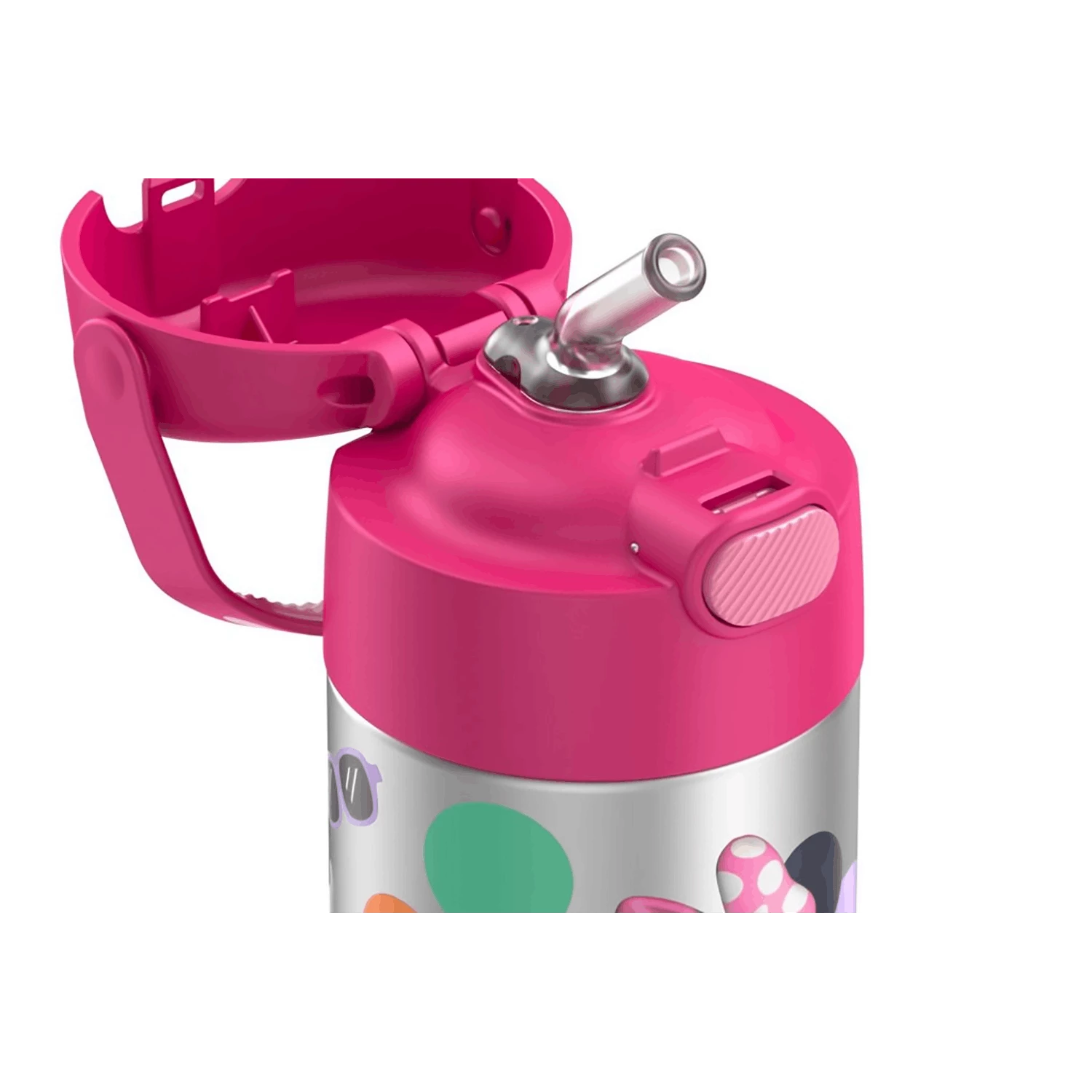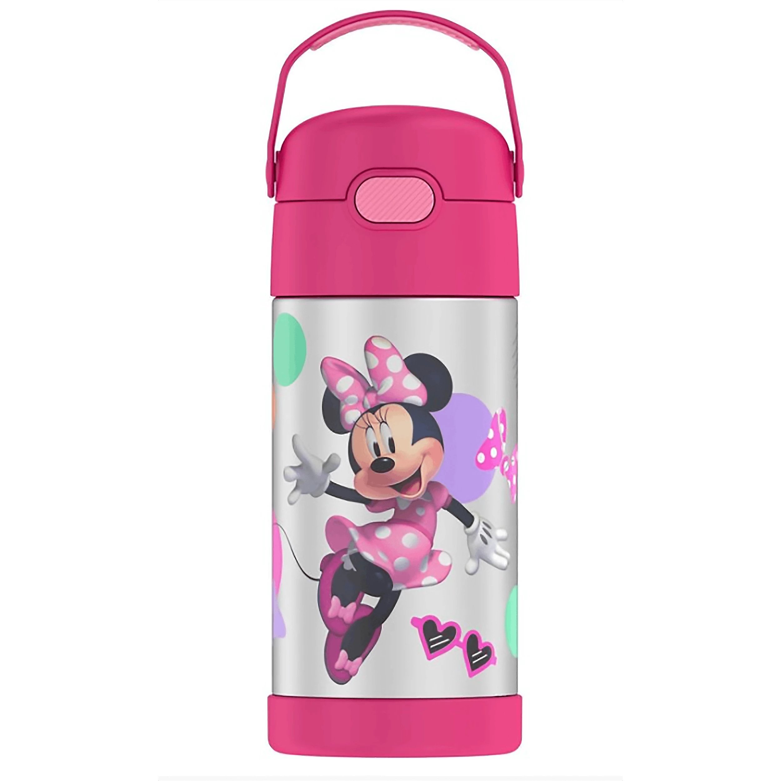 Kids love FUNtainer® products from Thermos® brand, but parents love them even more. The FUNtainer 12oz Vacuum Insulated Stainless Steel Water Bottle with a silicone straw keeps drinks cold for up to 12 hours. No make believe required. FUNtainer products are always made with love from BPA-free materials. The double wall stainless steel construction is built to handle drops, dings and assorted roughhousing. The 12oz bottle includes an integrated carry handle with soft-touch grip, making it easy for kids to carry with them throughout the day. The handle can also be folded down when not in use. Keep germs away with the hygienically covered straw which is removable for easy cleaning. To clean, you can pop your FUNtainer water bottle in the dishwasher; however hand washing is recommended. Not for use with hot liquids.