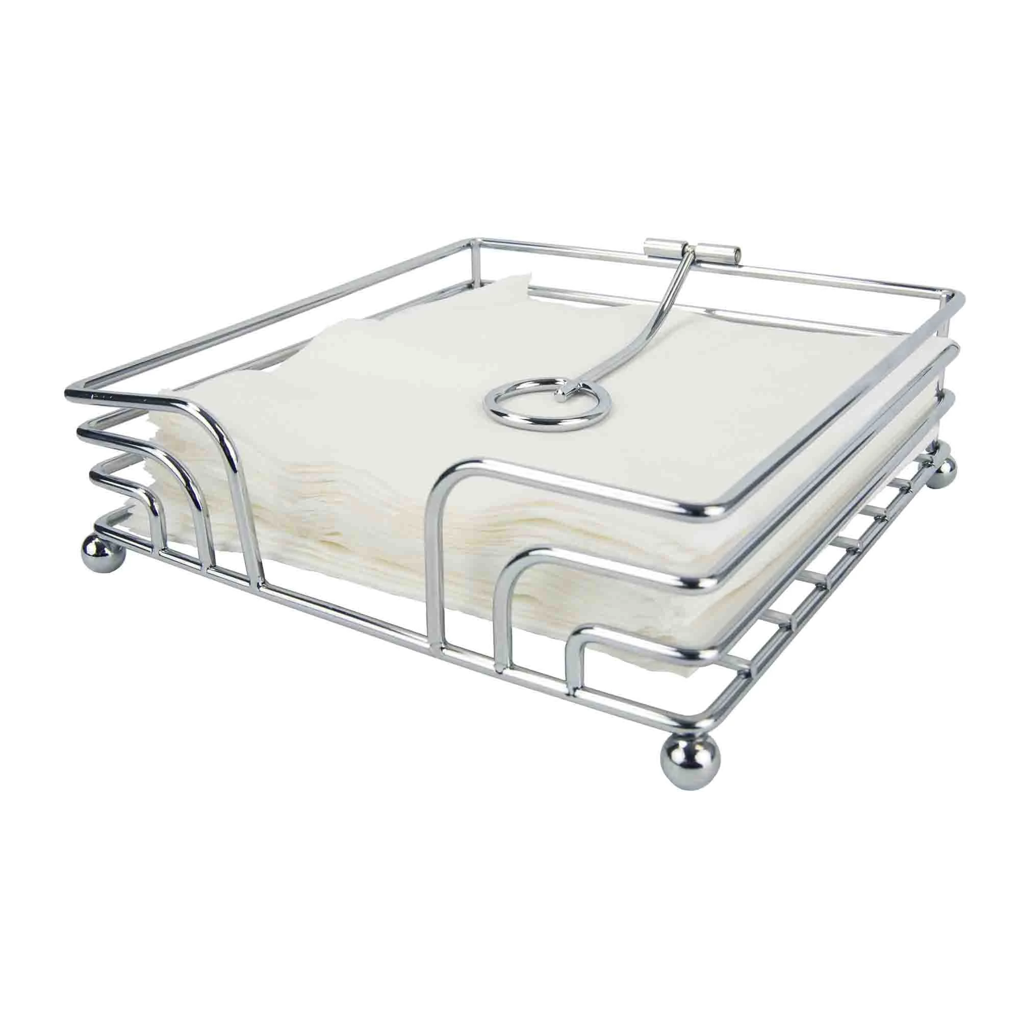 Never worry about napkins flying off your table at your next outdoor cookout and soiree with this steel napkin holder. Neatly nest a stack of napkins in its open base to easily have a napkin readily available to use while dining or cleaning up spills. The weighted pivoted arm locks napkins in place, making them perfect for even the most windiest outdoor picnic. With its gleaming chrome finish and simple design, it works as a perfect functional centerpiece for everyday use, special occasions and both indoors and out.