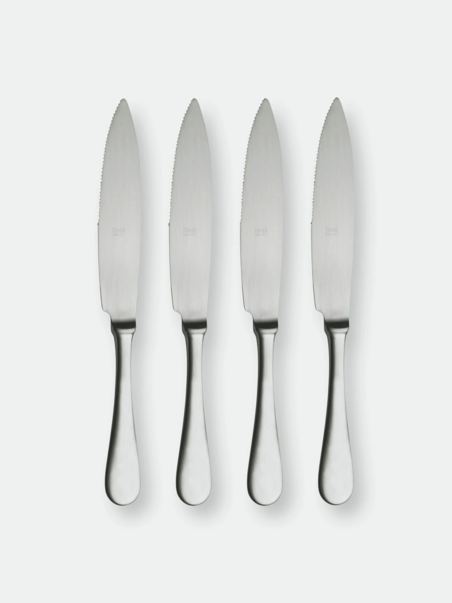 These durable steak knives are made 100% with stainless steel, there is no wooden or plastic handle that can attract batterials or ruin over time. Double serration for a durable sharpness. Dishwasher safe.