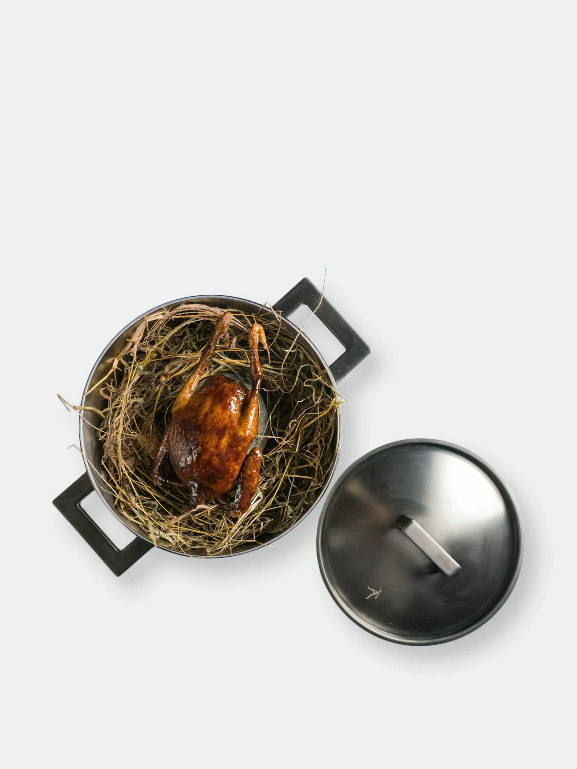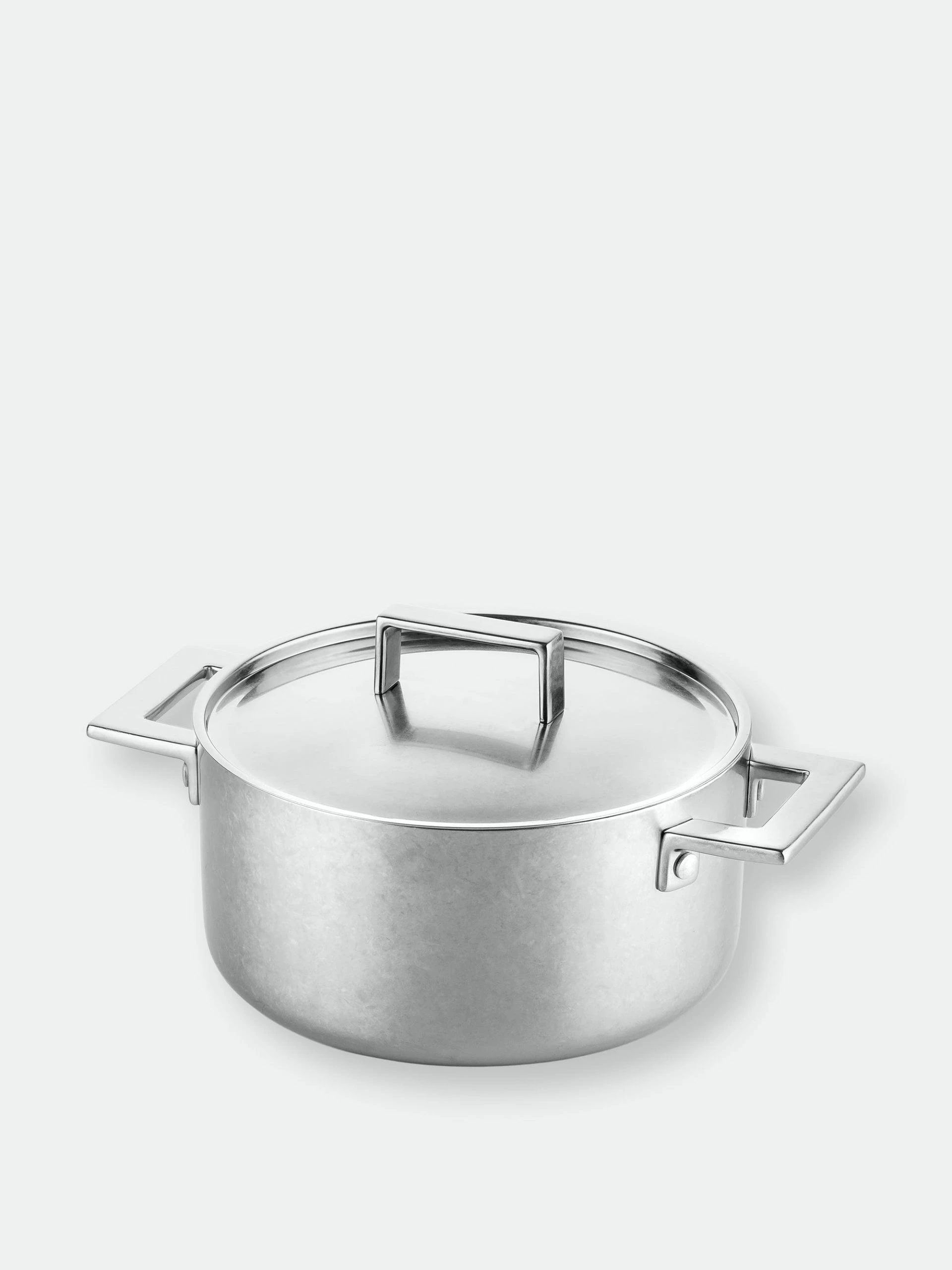 Rustic, Industrial design for this collection of high-performance pots and pans. The special Vintage Process gives to the surface of Stainless Steel a rustic, warm and elegant appearence; yet the product is inoxidable, dishwasher safe, durable and food safe. The production process is not galvanic and do not produce pollution.The high conductivity of pure aluminum merges with the practicality and hygiene of steel. Technology: Tri-ply, 18/10 Stainless Steel, aluminum core, Induction Steel outside, Mirror polished surfaces, outside and inside, Handles with strongly fixed 18/10 Stainless Steel rivets, Graduated measurement inside. Dishwasher proof. Results: The heat is distributed evenly over the surface of the pot; Greater control of cooking temperature; Considerable saving of energy and time; Minor alteration of vitamins and proteins during cooking.