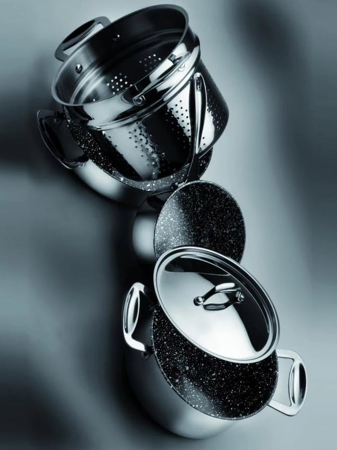 Using the most sophisticated technologies, we created a new pots and pans collection that respects the nature and our planet. The goal to reach the highest thermal performances in the shortest time without burning the food is the core of our project. With the GLAMOUR STONE cookware we can devote ourselves to our passion: our love for the healthy and easy cousine that saves time and energy without affecting the flavours and the nutritional properties of the foods we cook. 18/10 Stainless Steel Body and handle, Eterna Non-Stick triple layer coating, Resistant to metail utensils, Pollution Free, Aluminium Core for even heat distribution, Suitable for all cooking surfaces including induction, Easy to clean , Dishwasher safe, Oven Safe, PFOA-Free. The internal ETERNA® non-sticking coating guarantees the best performances. Strongly repels water and grease for the easiest cleaning ever. Lasts 3 times longer in the Accelerated Cooking Test. Has 10 times the Dry-Egg release of the nearest competitive coating. It gives longer nonstick life than anything we have ever tested.