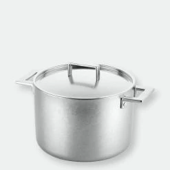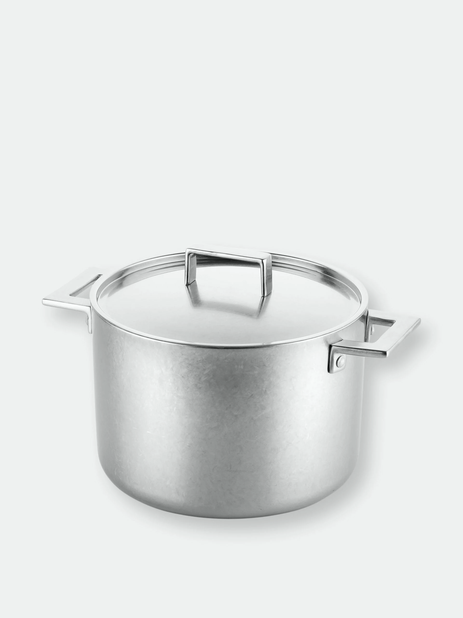 Rustic, Industrial design for this collection of high-performance pots and pans. The special Vintage Process gives to the surface of Stainless Steel a rustic, warm and elegant appearence; yet the product is inoxidable, dishwasher safe, durable and food safe. The production process is not galvanic and do not produce pollution.The high conductivity of pure aluminum merges with the practicality and hygiene of steel. Technology: Tri-ply, 18/10 Stainless Steel, aluminum core, Induction Steel outside, Mirror polished surfaces, outside and inside, Handles with strongly fixed 18/10 Stainless Steel rivets, Graduated measurement inside. Dishwasher proof. Results: The heat is distributed evenly over the surface of the pot; Greater control of cooking temperature; Considerable saving of energy and time; Minor alteration of vitamins and proteins during cooking.