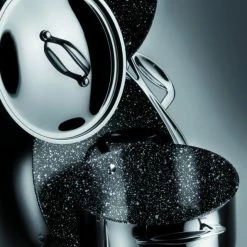 Using the most sophisticated technologies, we created a new pots and pans collection that respects the nature and our planet. The goal to reach the highest thermal performances in the shortest time without burning the food is the core of our project. With the GLAMOUR STONE cookware we can devote ourselves to our passion: our love for the healthy and easy cousine that saves time and energy without affecting the flavours and the nutritional properties of the foods we cook. 18/10 Stainless Steel Body, Eterna Non-Stick triple layer coating, Resistant to metail utensils, Pollution Free, Aluminium Core for even heat distribution, Suitable for all cooking surfaces including induction, Easy to clean , Dishwasher safe, PFOA-Free, ergonomic backelite handle for an easy grip. The internal ETERNA® non-sticking coating guarantees the best performances. Strongly repels water and grease for the easiest cleaning ever. Lasts 3 times longer in the Accelerated Cooking Test. Has 10 times the Dry-Egg release of the nearest competitive coating. It gives longer nonstick life than anything we have ever tested.
