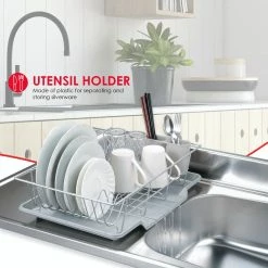 Home Basics 3 Piece Vinyl Coated Steel Dish Drainer With Drip Tray