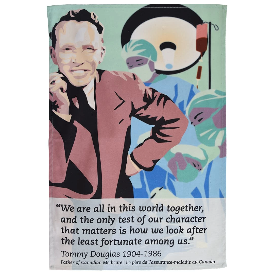Thomas Clement Douglas was a Canadian politician who served as the seventh Premier of Saskatchewan from 1944 to 1961 and Leader of the New Democratic Party from 1961 to 1971. His cabinet was the first democratic socialist government in North America. Douglas introduced medical insurance reform in his first term, and gradually moved Saskatchewan towards universal healthcare near the end of his last term. Although the Saskatchewan universal program was not finally launched until his successor’s term in 1962, Douglas is now widely known as the father of Medicare, the publicly funded, single-payer universal health care system of Canada. In 2004, a CBC Television program named Tommy Douglas „The Greatest Canadian“, based on a Canada-wide, viewer-supported survey.