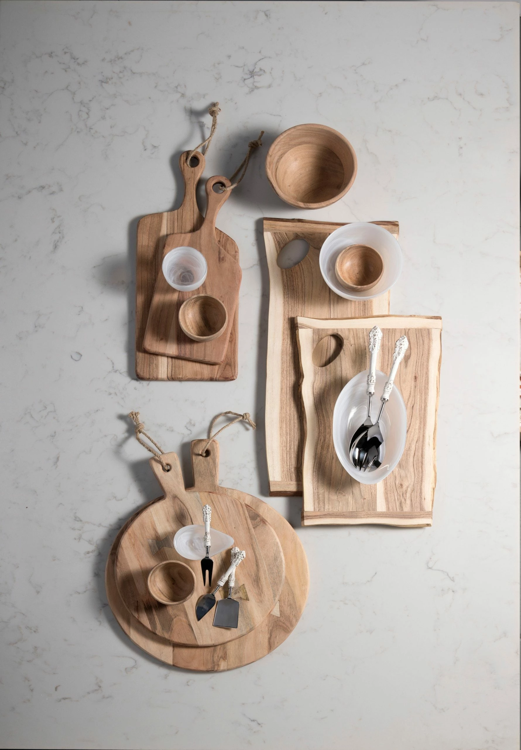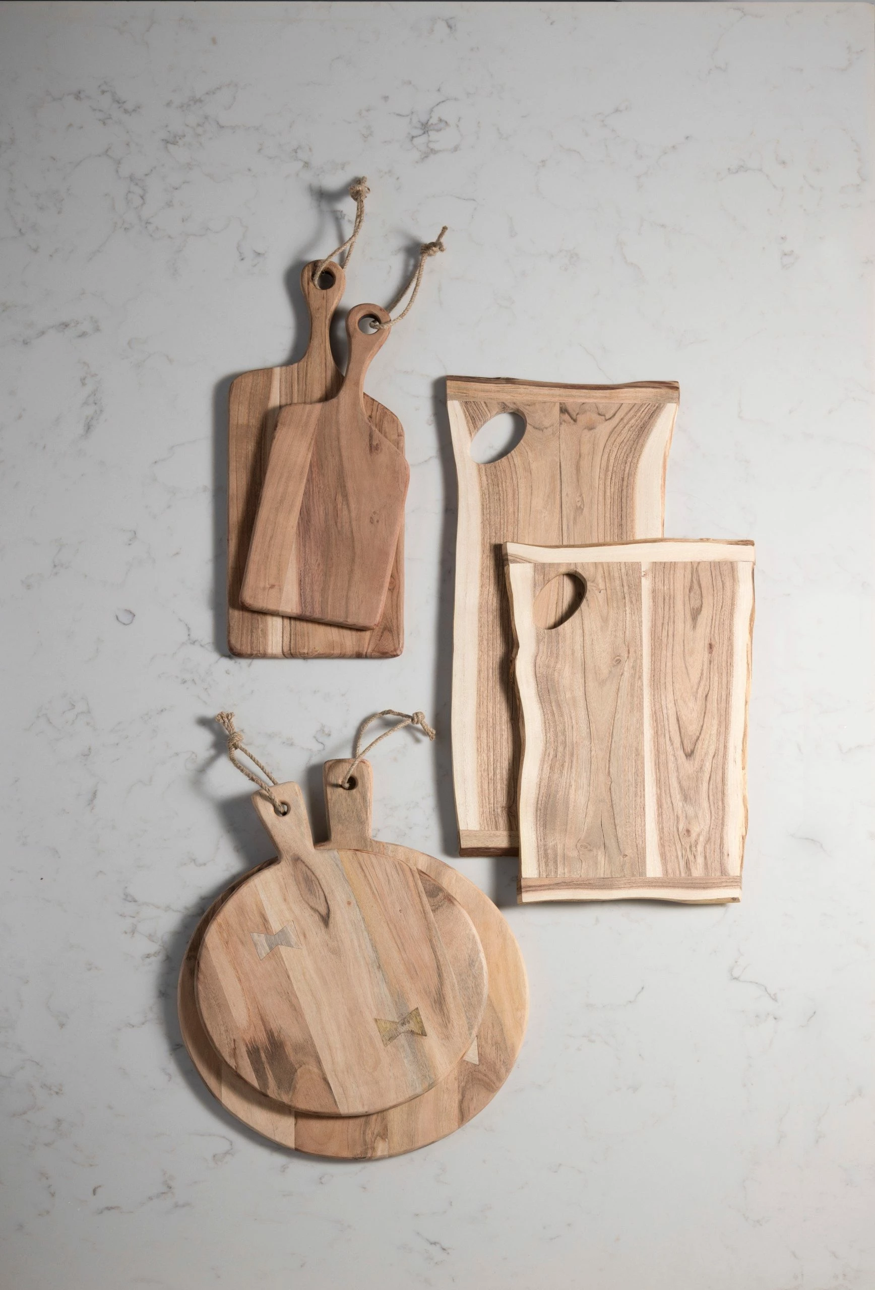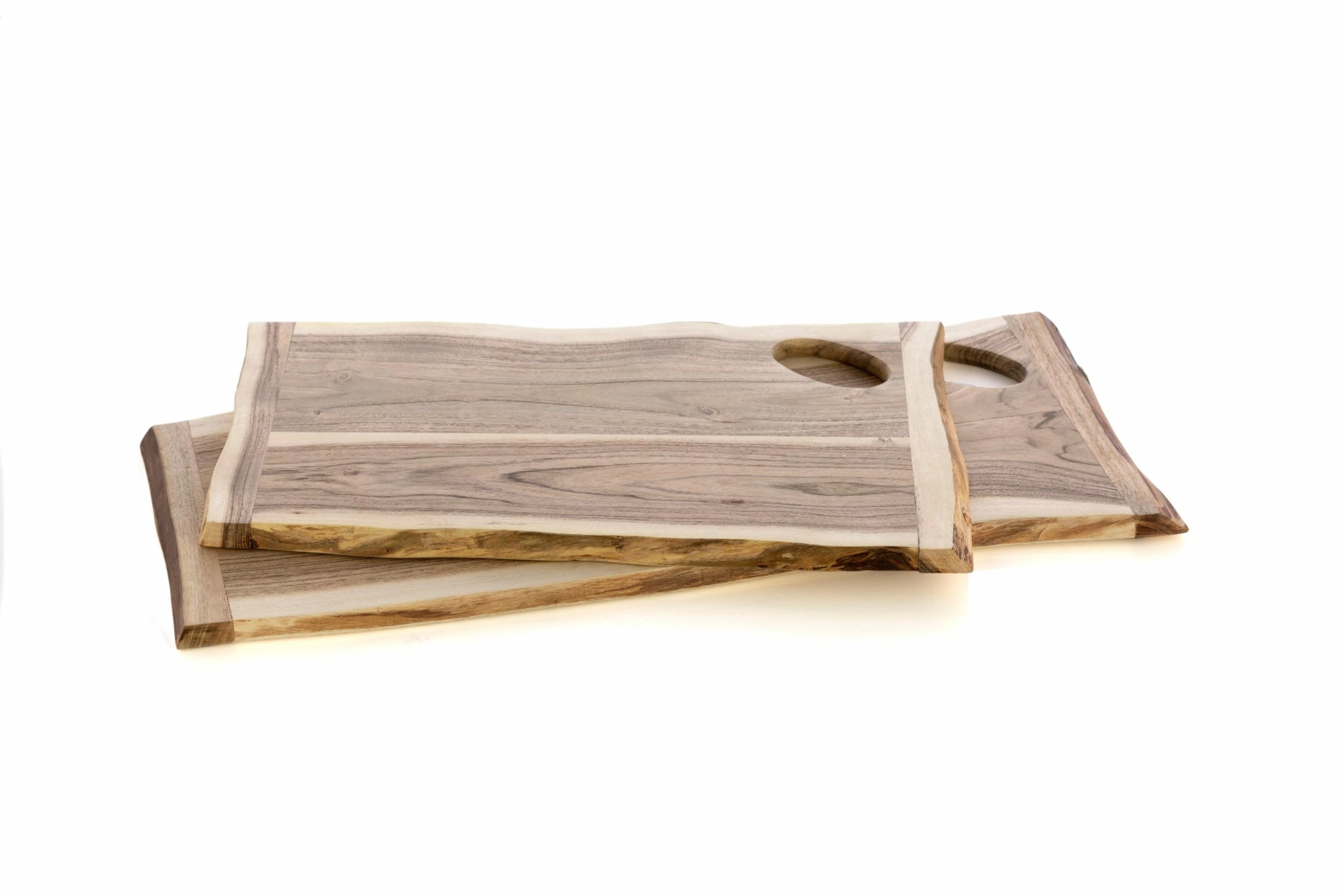 The set of 2 montana live edge cutting boards are perfect for serving or display. Show off your charcuterie skills or serve your favorite dish. This board will be sure to stand out! The raw edges add perfect detail. Acacia wood is a hardwood that is naturally antibacterial making it a safe choice for food preparation or service. Our collection of montana serving and cutting boards does not contain any artificial finishes and is left in its raw natural state.