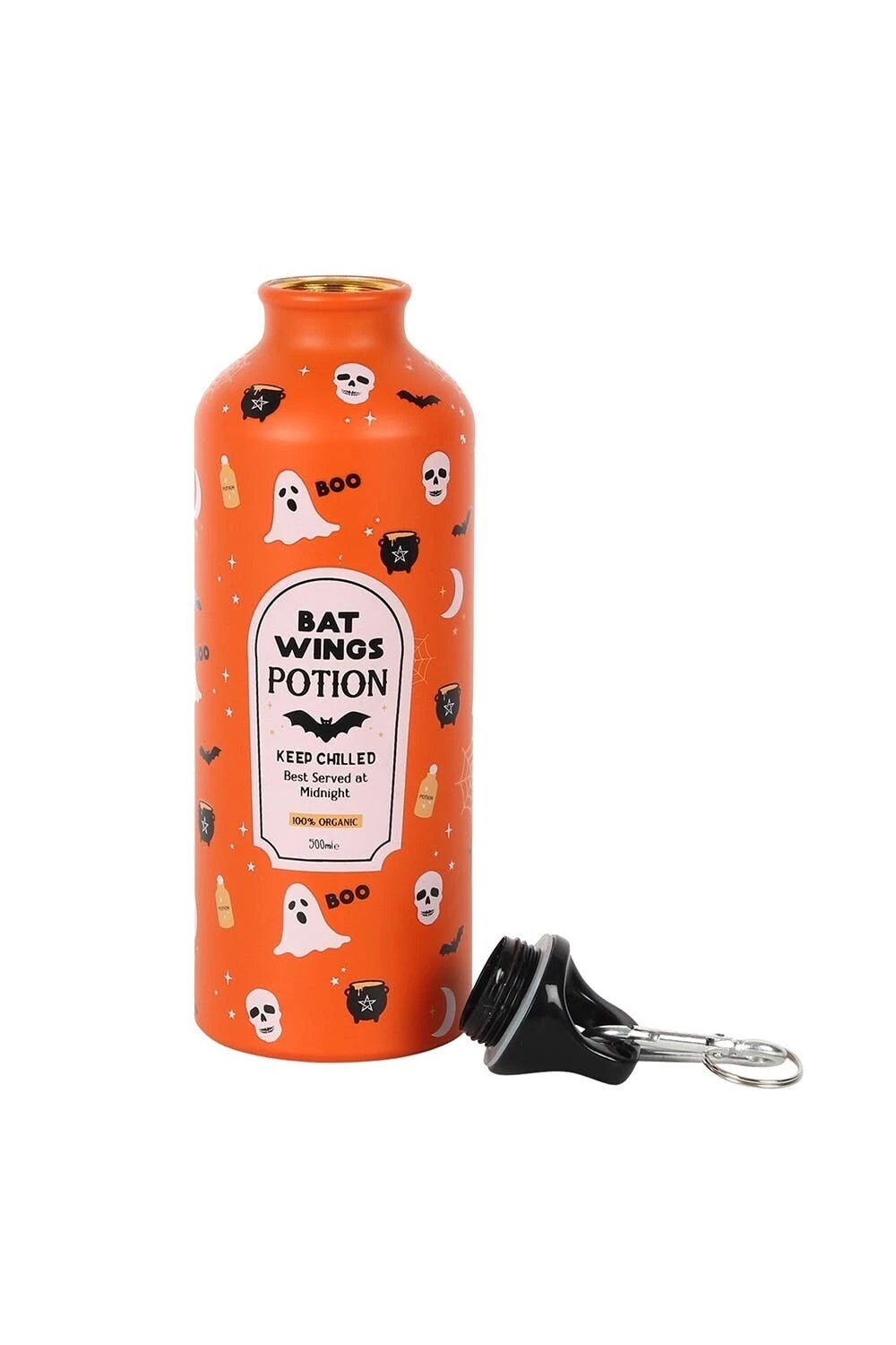 – Bat wings potion metal water bottle- 100% mixed- Drinkware- Portable- Travel- Seasonal spooky- Eco friendly- Capacity (imperial): 0.88pint- Design: Bat,Cauldron- Ghost- Skull- Text