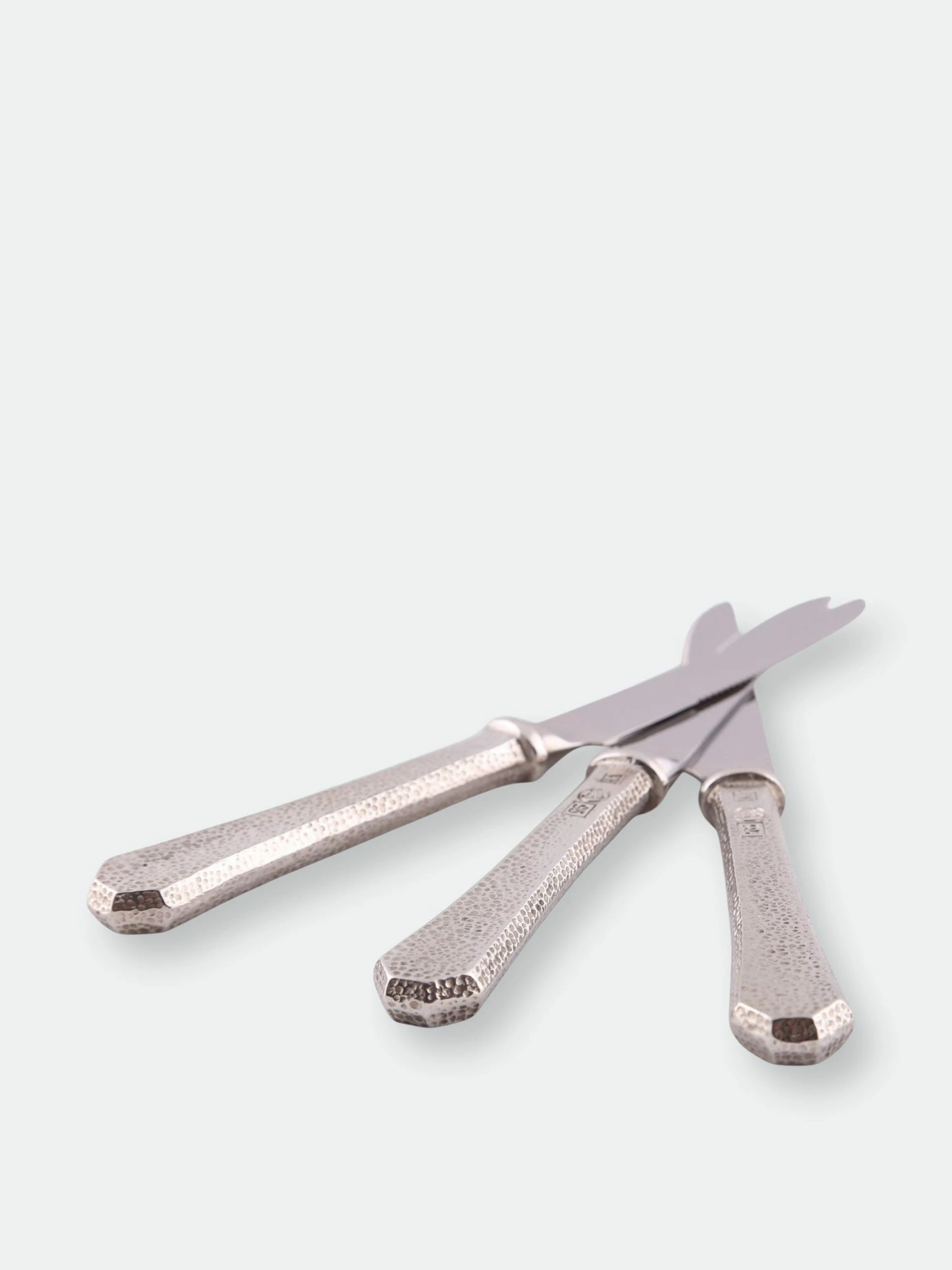 Traditional beauty and form characterize the design of Vagabond House’s Hammered Steak Knife Set. Crafted in luxury-grade pewter, each hammer-patterned handle provides stability and functional elegance to your dining experience. These pieces feature stainless steel blades and come in a set of six.