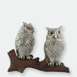 Give nature a seat at the table during family meals by pairing this owl on log salt and pepper shaker set with your everyday dinnerware. The extraordinary craftsmanship in these winged wonders inspires you to find new details every time you pick them up.Artfully handcrafted from solid, food-safe pewter, this set brings unparalleled quality and a whimsical touch to every dining occasion. Wish newlyweds or new homeowners a lifetime of happy mealtime memories by offering this mated-for-life couple as a gift.