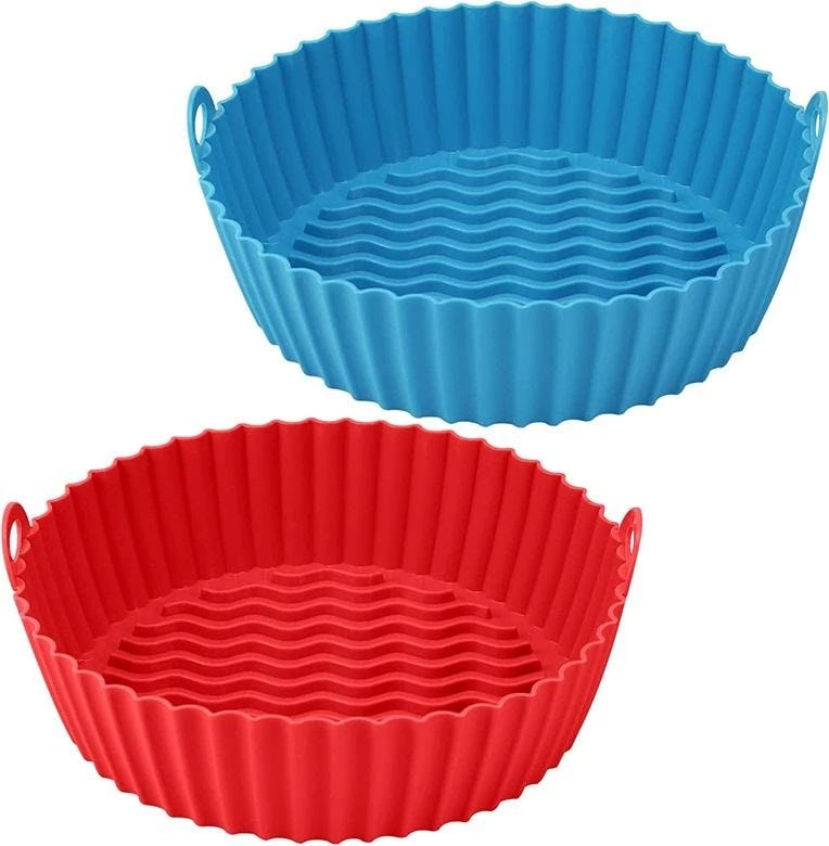 Silicone air fryer basket is a perfect fit for 5QT or bigger air fryers (Gourmia, Ninja, Phillips, Nuwave, Gowise, Dash, Cozyna, Cosori, Ultrean, Vremi, power XL air fryer), steamer, instant pot, microwave oven, etc. Silicone Air fryer Liner is made of safe food-grade silicone. It’s BPA-free, heat resistant up to 450 ℉, non-stick, non-toxic, odorless, reusable, and eco-friendly. Does not contain bisphenol A, a fluorescent agent that can be directly contacted with food. Microwave oven friendly. Kitchenware Air fryer Liner is dishwasher safe and easy to hand wash. Just add dish soap to clean by hand. No more cleaning the air fryer basket, keeps your air fryer free from food residue, grease, and grime without compromising the life span of your air fryer. The Air Fryer liner has 14 air guide channels. The air convection design on both sides does not affect air flow and allows the heat to penetrate evenly to cook your food in less time. Keep your bacon, bread, dumpling, chicken and buns integrity and nice look, and no effect on the taste of the food. 3D drainage groove, which facilitates the oil to flow to the edge groove and the food tastes more delicious.