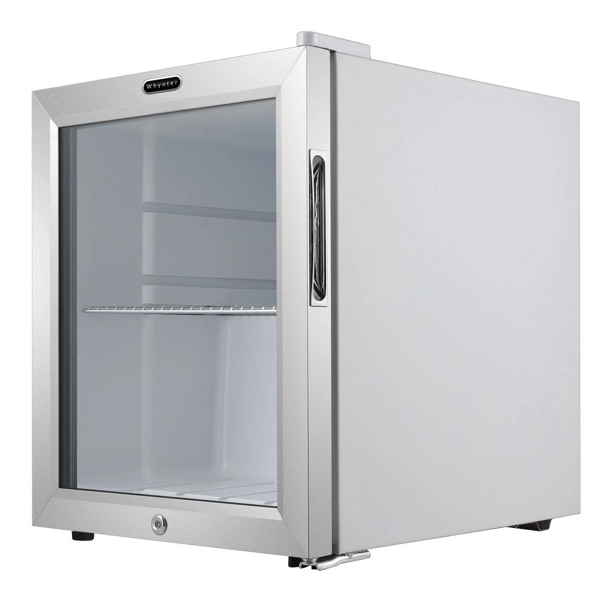 The Whynter 62 Can Stainless Steel Beverage Refrigerator is the ideal choice for compact and efficient beverage display and refrigeration. The Whynter Beverage Refrigerator / Cooler offers a compact and powerful cooling solution ideal for your entertaining or retail merchandising needs.Unlike many budget beverage refrigerators, the Whynter 62 Can Stainless Steel Beverage Refrigerator utilizes premium features and design to provide a sleek showcase that will be centerpiece of any space. With its powerful compressor and internal air-cooled system, this beverage refrigerator creates an evenly-cooled space ensuring consistent temperatures throughout the beverage refrigerator.The stainless steel trimmed glass door allows you to see view the contents while maintaining internal temperatures and increasing energy efficiency. The Whynter 62 Can Stainless Steel Beverage Refrigerator is equipped with a lock to keep your beverages safe and secure. The door swing direction is also reversible for customization to your specific requirements.
